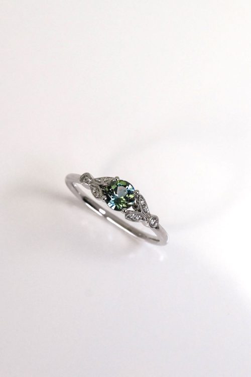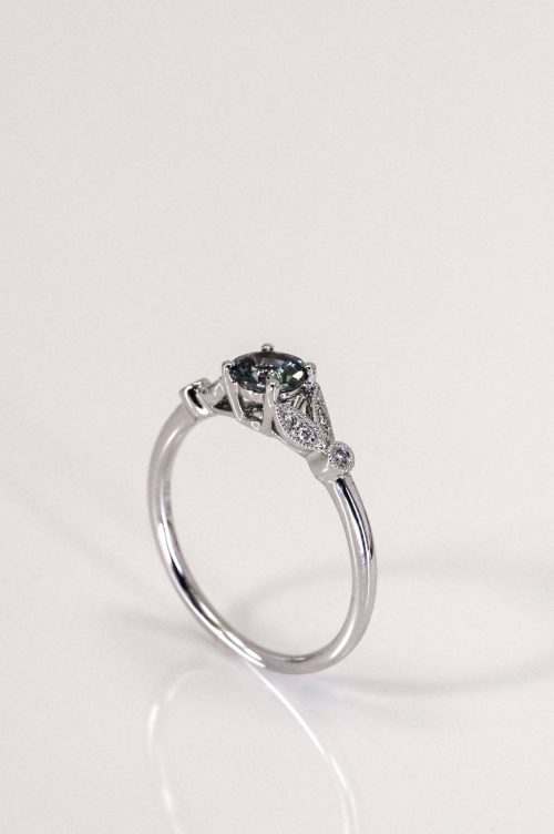 Fancy Sapphire (Blueish Green) and Diamond Ring