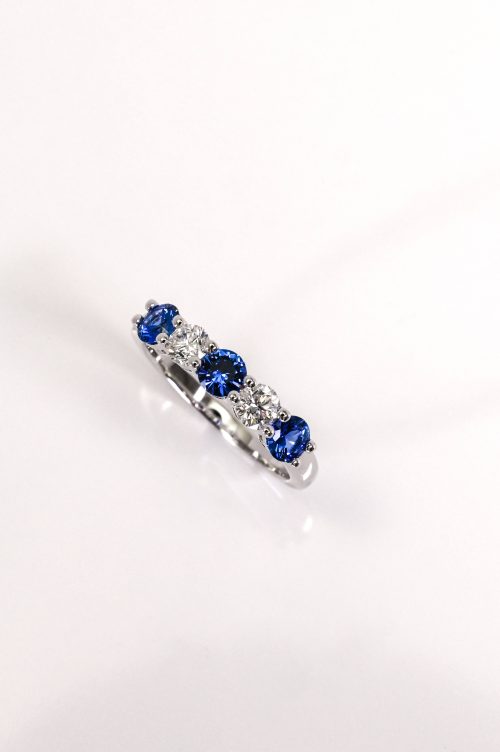 Blue Sapphire and Diamond Anniversary Ring