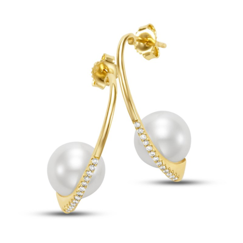 Pearl and Diamond Earrings (Fresh Water)