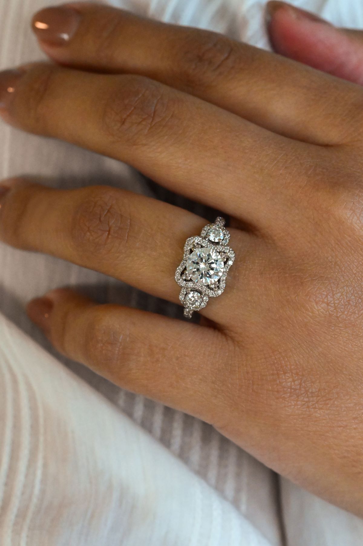 - Center Stone: Round Brilliant Cut Cubic Zirconia