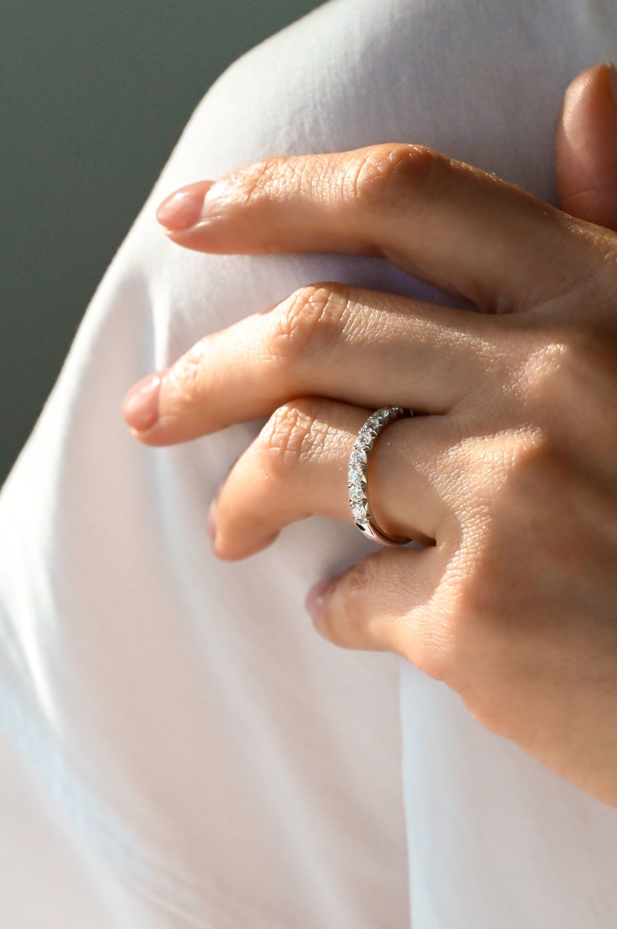 Celebrate lasting love with this classic 14K white gold anniversary band, featuring 11 round brilliant-cut natural white diamonds in a timeless half-eternity setting. With a total diamond weight of 0.68ct, this ring radiates enduring elegance and refined sparkle.
