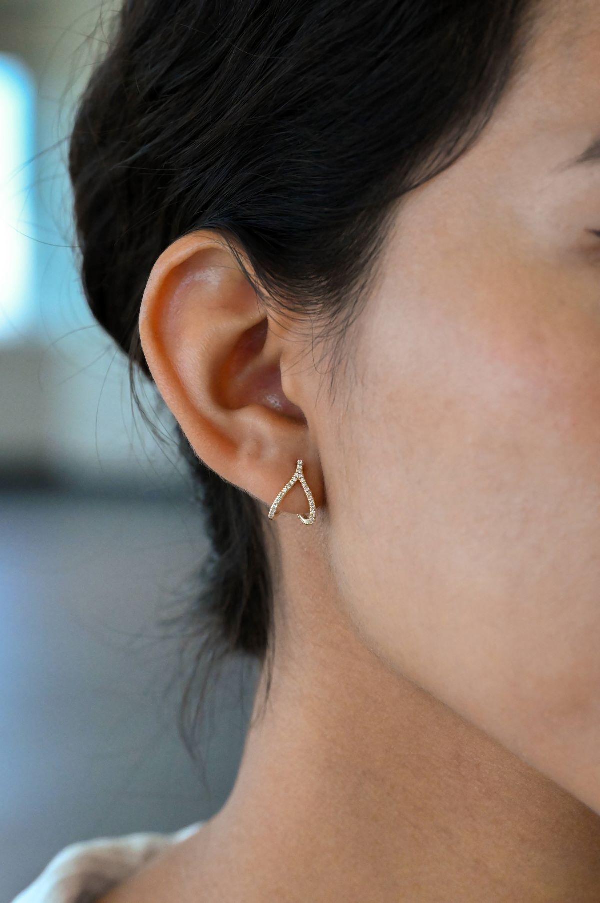 Crafted in 14Kt yellow gold, these elegant pierced earrings feature a split hoop design with fine micro claw settings. A total of 65 round brilliant cut natural diamonds, weighing 0.12 carats, add a touch of refined sparkle. Finished with secure posts and butterfly backs, these earrings offer timeless sophistication for everyday elegance or evening wear.