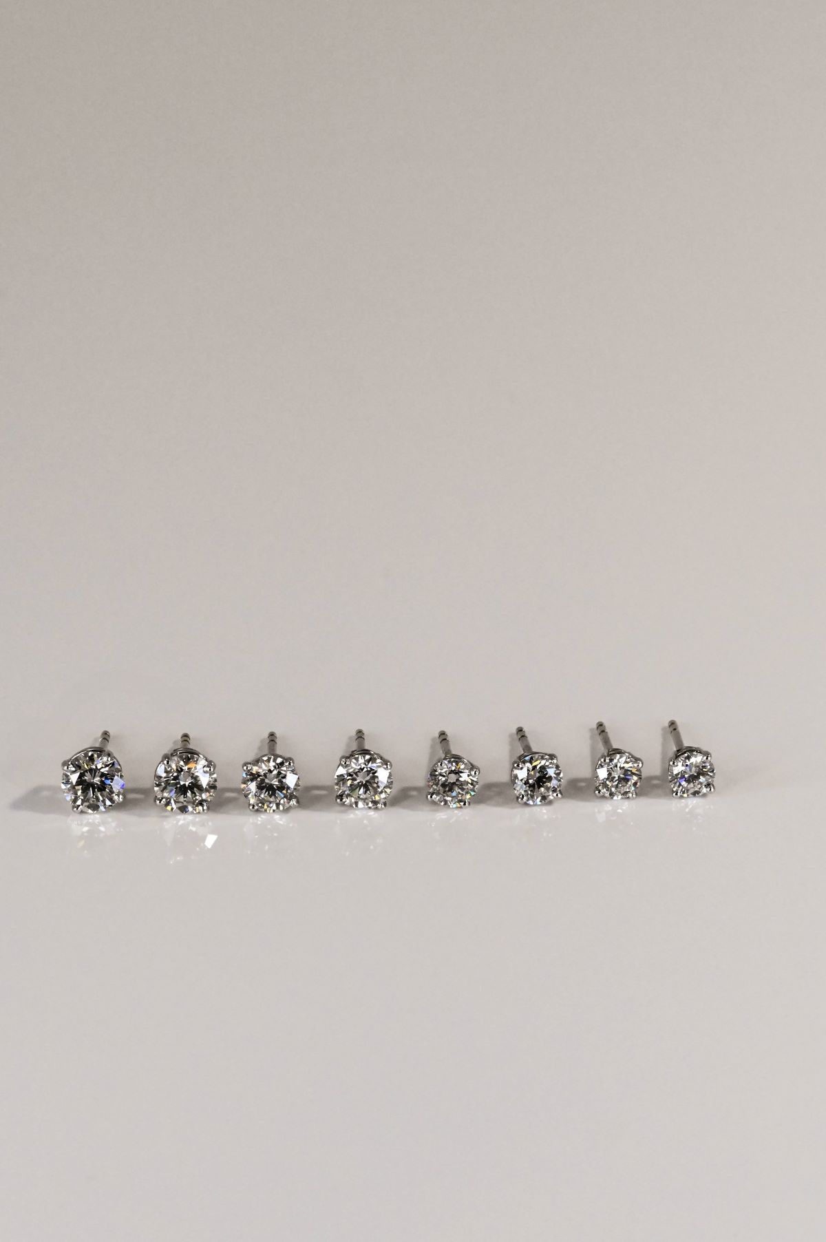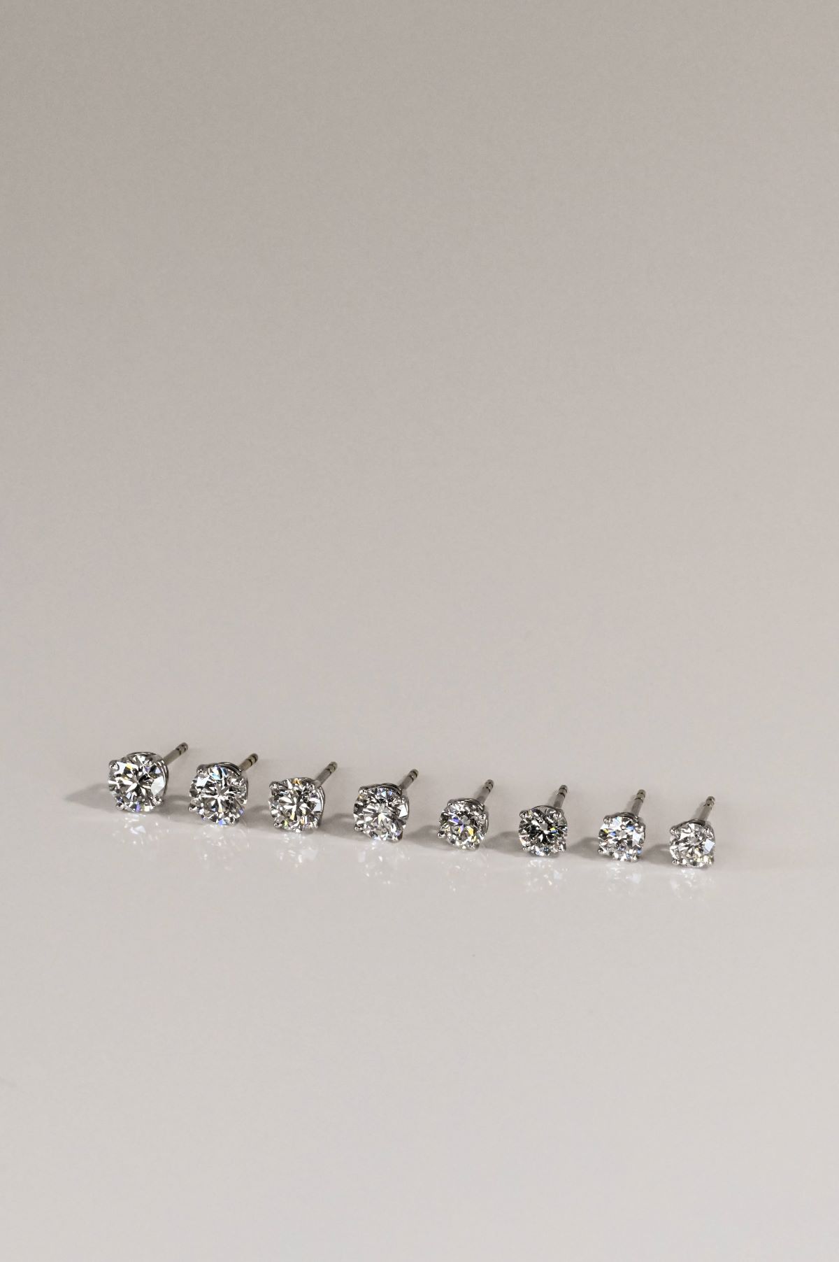 Pair of ladies diamond stud earrings crafted in 14kt white gold. Each earring features a four-claw, two-level open gallery design with stud posts and secure alpha locking backs. Set with two round brilliant cut diamonds of SI1–SI2 clarity and G color, with a combined total weight of 0.812 carats. A classic design that highlights both elegance and expert craftsmanship.