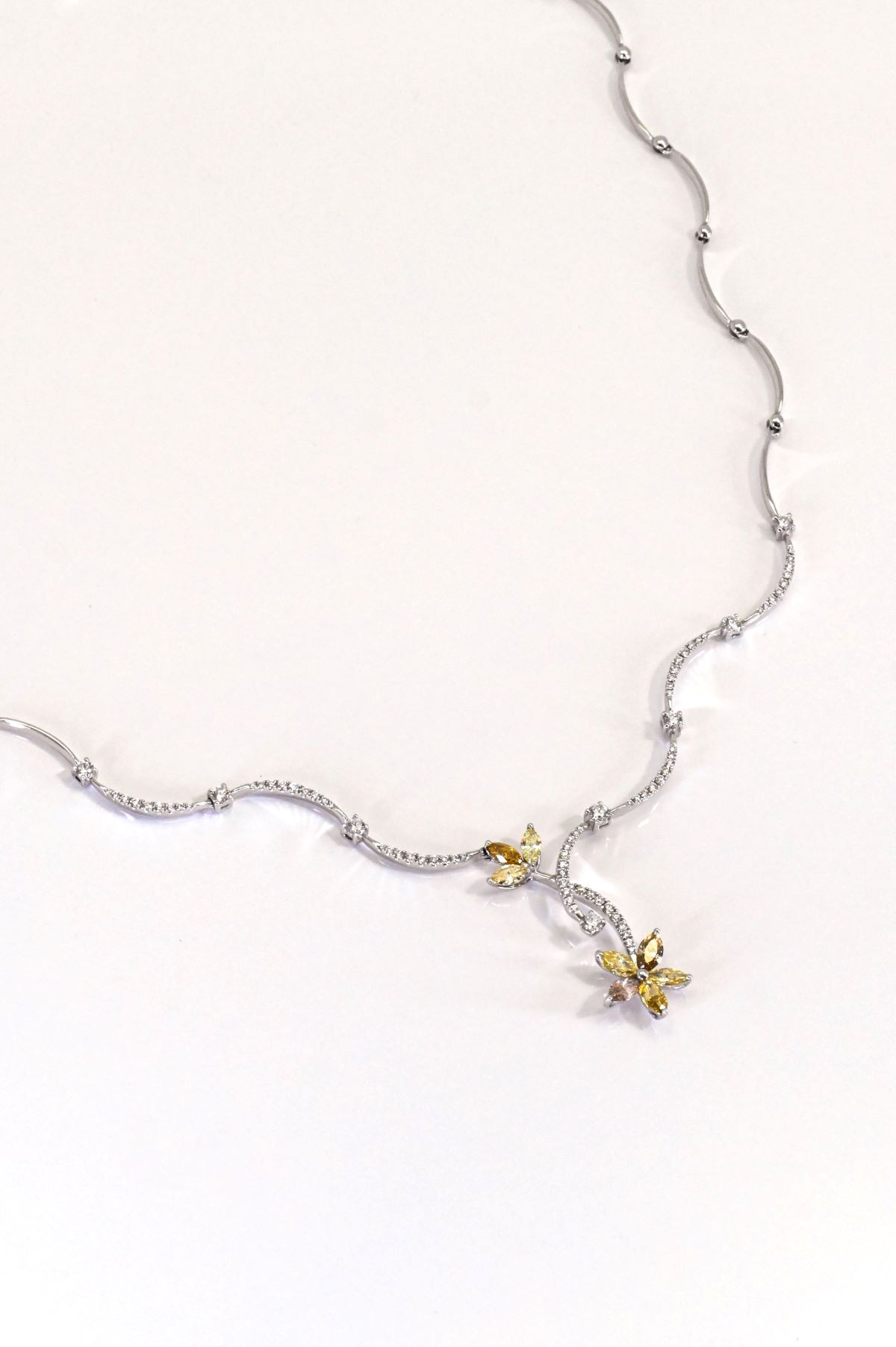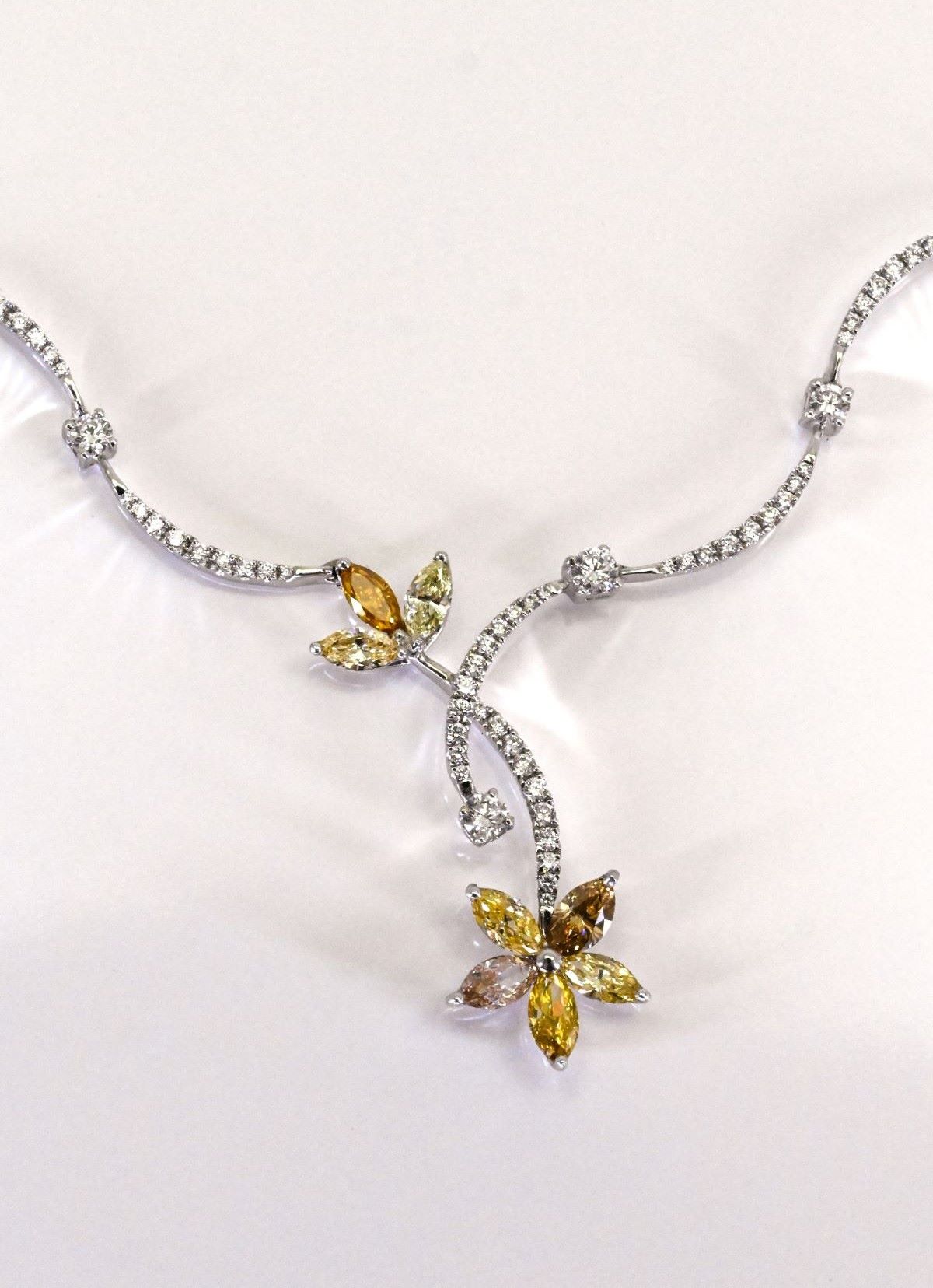 Exquisitely crafted in 18K white gold, this necklace features eight natural fancy-colored diamonds totaling 1.13 carats, beautifully accented by 83 round brilliant white diamonds totaling 0.94 carats. The combination of vibrant colored diamonds and classic white diamonds creates a striking, elegant contrast, making this piece a versatile statement of luxury and sophistication. Perfect for both special occasions and everyday refinement.