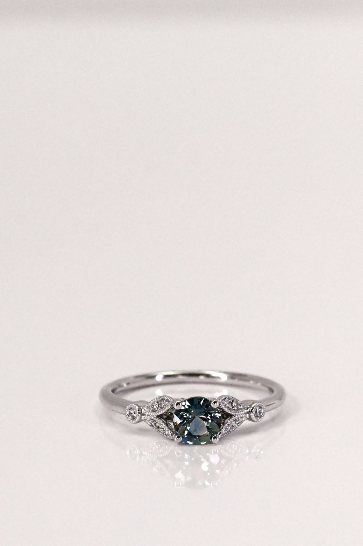Fancy Sapphire (Blueish Green) and Diamond Ring