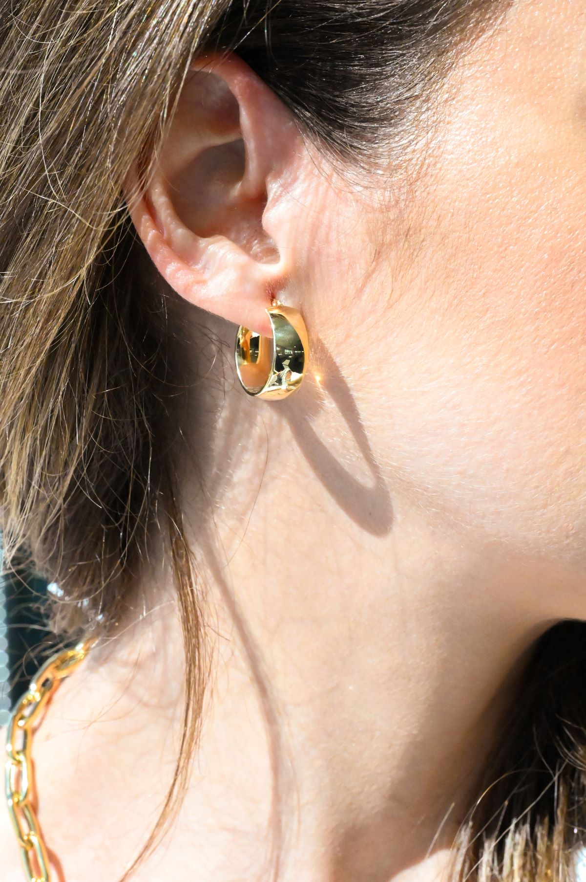 Bold yet beautifully lightweight, these wide round hoop earrings are crafted in luminous 18Kt yellow gold with a sleek, high-shine finish. Their hollow construction provides effortless wearability, while the hinged ear wire and friction clasp offer a secure, comfortable fit. Weighing just 2.84 grams in total, these earrings bring a touch of classic elegance to any look — perfect for everyday wear or elevated occasions.