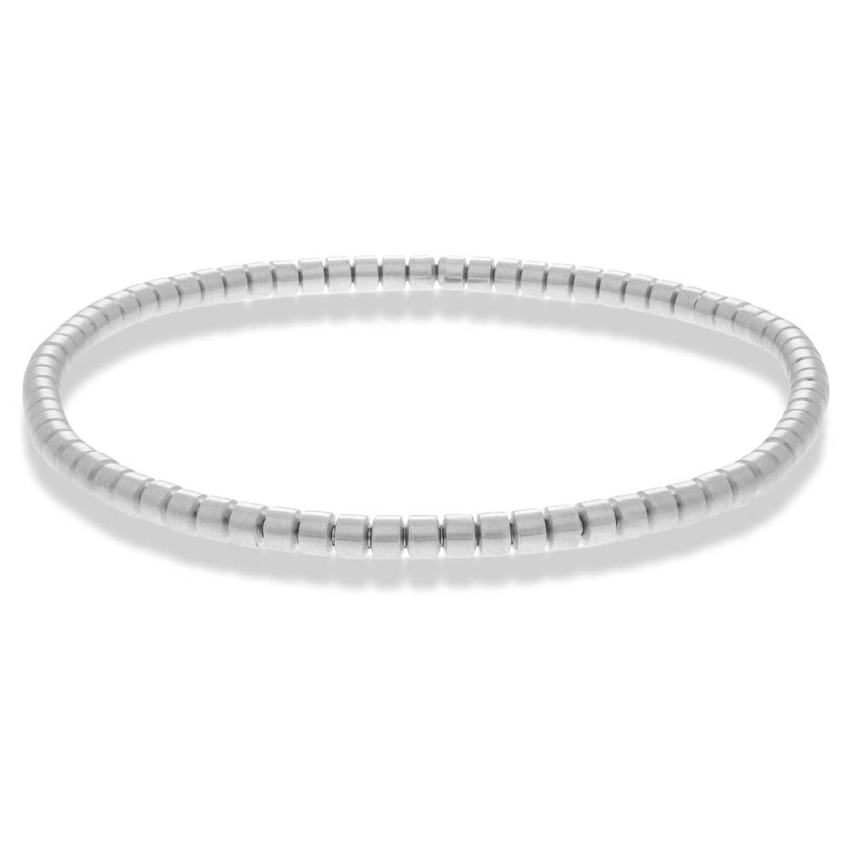 Gents Hulchi Belluni wrist bracelet in an expandable style, meticulously crafted from 18 karat white gold with a sleek matte finish. This refined bracelet weighs 8.8 grams and embodies understated luxury with its modern, minimalist design and impeccable craftsmanship.