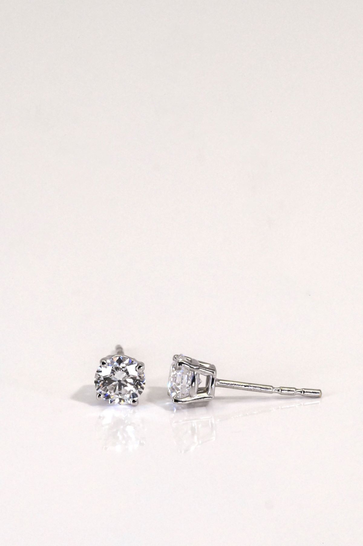 14-karat white gold lab-grown diamond stud earrings, set with a total diamond weight of 0.77 carats. Classic, elegant, and timeless, offering brilliant sparkle with a modern touch.