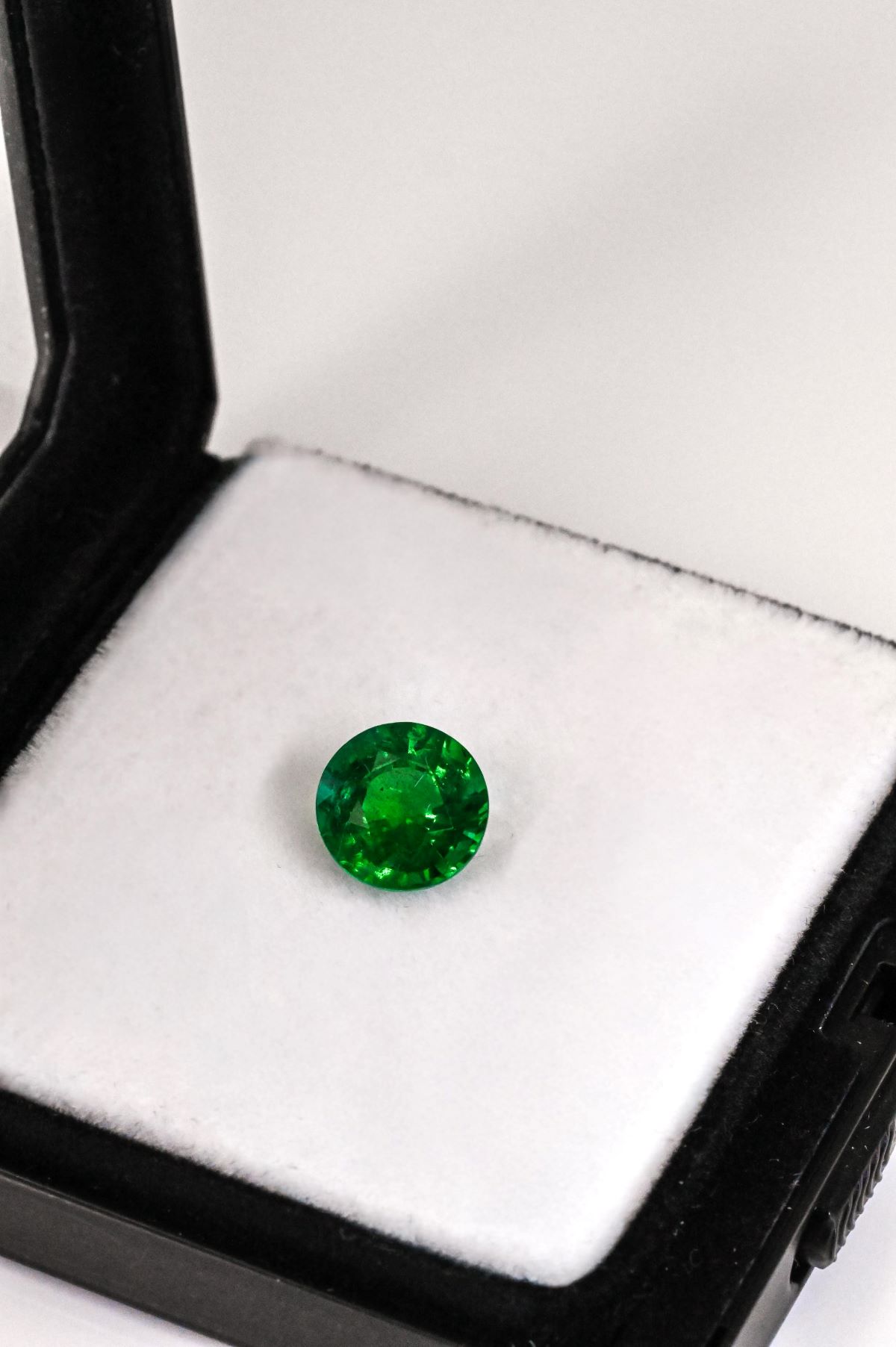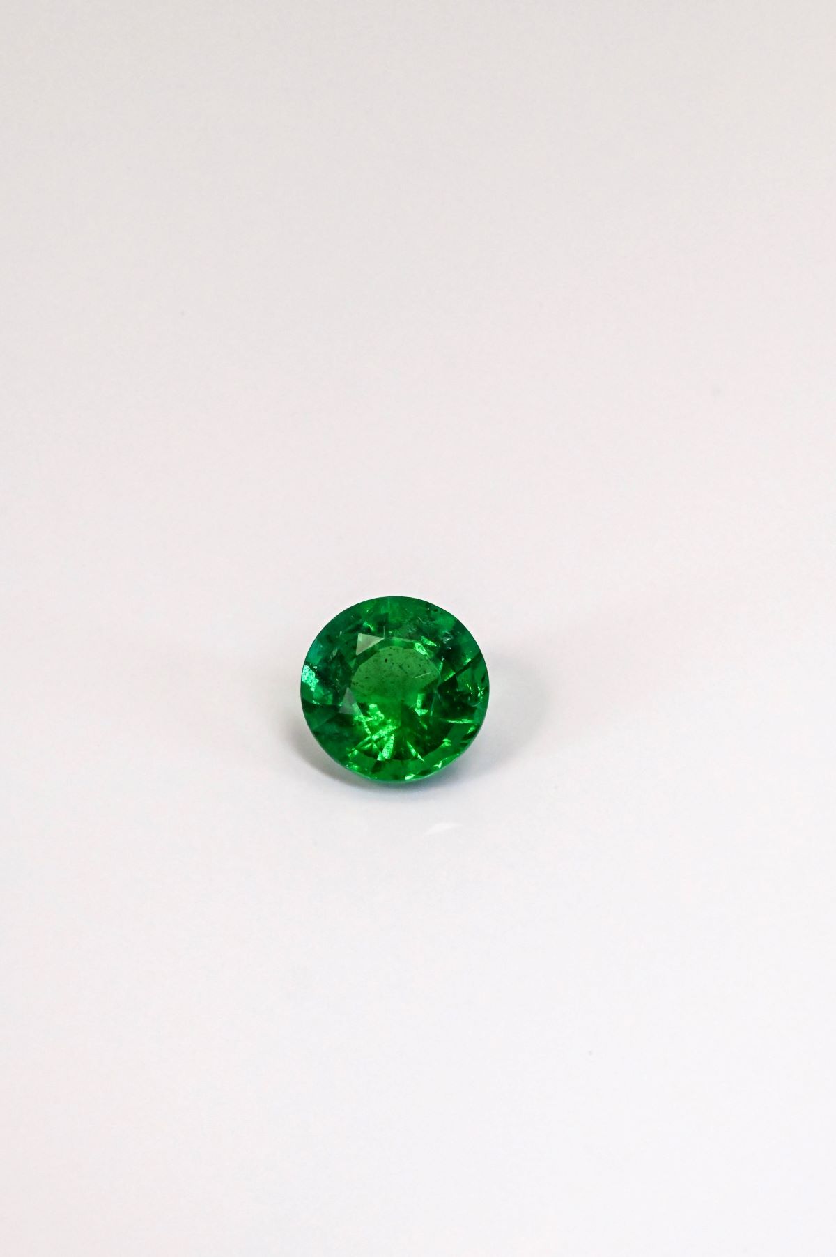 A 2.68-carat round faceted natural Zambian emerald, measuring 9.13 x 6.02 mm. This exceptional gemstone displays the finest emerald green hue with vibrant saturation and remarkable clarity. Its rich color and lively brilliance reflect the superior quality characteristic of Zambia’s most coveted emeralds — an extraordinary gem, ideal for a bespoke fine jewelry creation.