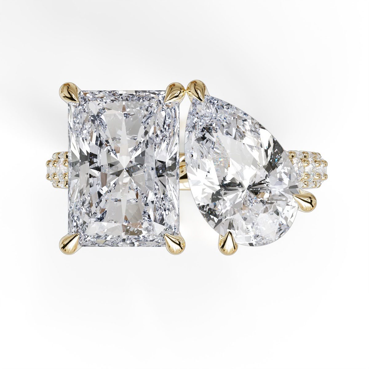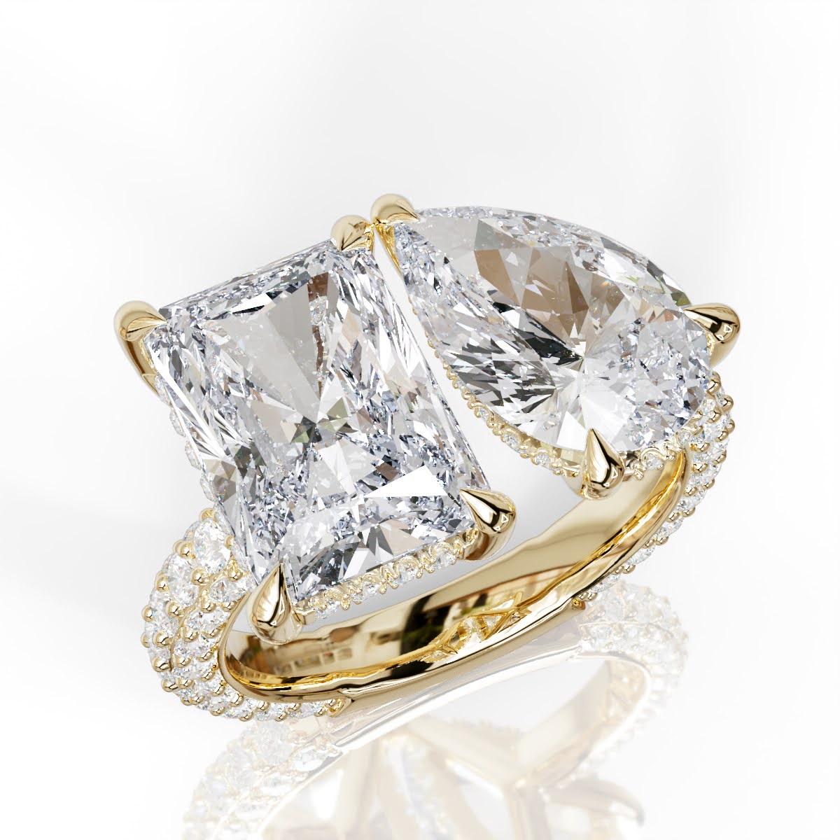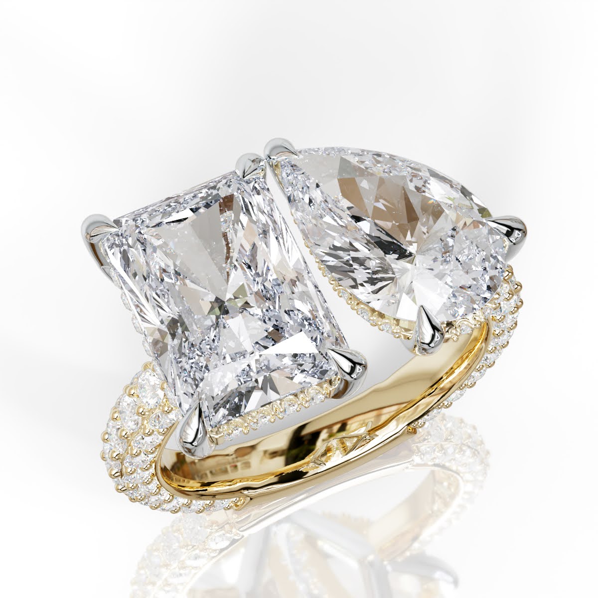 Like two melodies entwined in perfect harmony, this Toi et Moi ring captures the romantic rhythm of nature’s most tender season. A radiant-cut diamond and a pear-shaped diamond meet side by side — two souls, two stories, one love.
