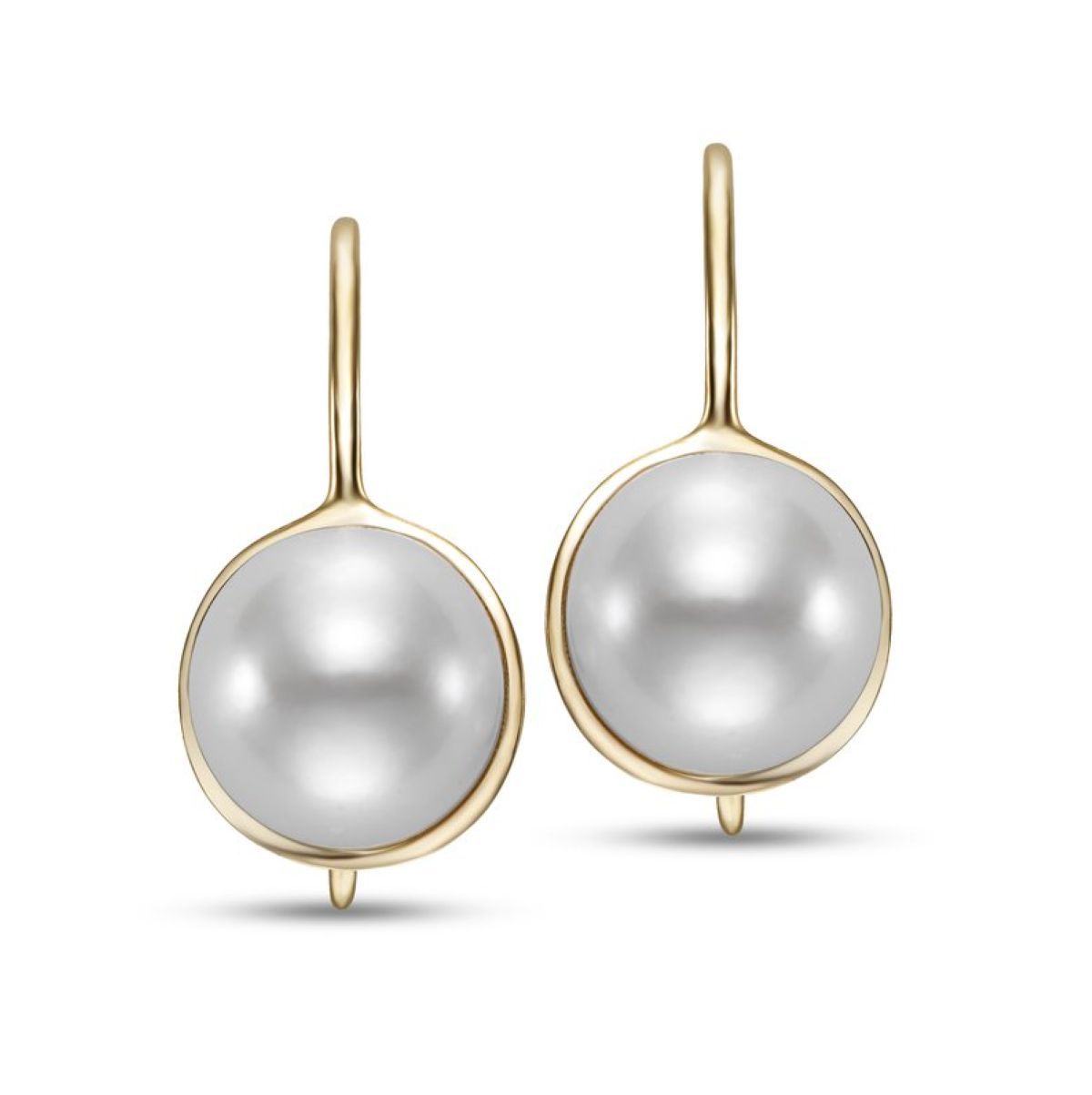 These Mastoloni freshwater pearl pierced earrings feature 8.5–9 mm round cultured pearls, beautifully set in 14k yellow gold with solid shepherd’s hook posts. Timeless and elegant, they offer a classic silhouette with a subtle lustrous glow, perfect for both everyday sophistication and special occasions.