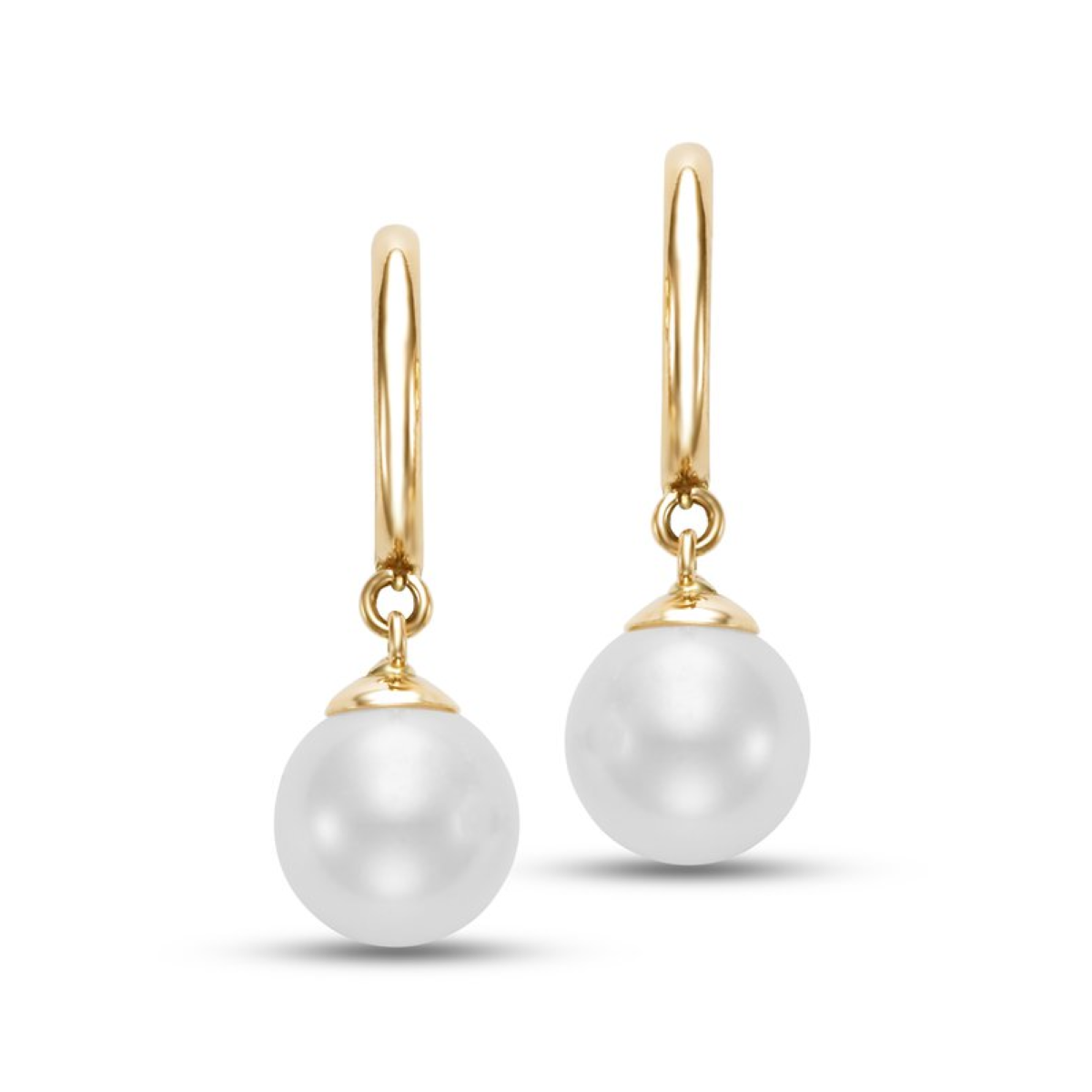 These Mastoloni ladies’ 14k yellow gold freshwater pearl drop earrings feature 7–7.5 mm round cultured pearls. Designed with stud posts and secured with butterfly backs, they offer timeless elegance and subtle sophistication, making them perfect for everyday wear or special occasions.