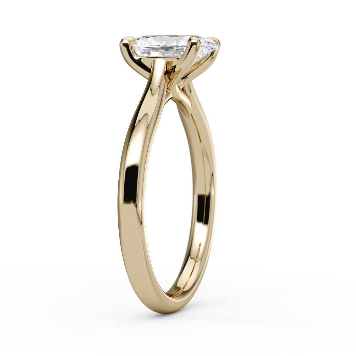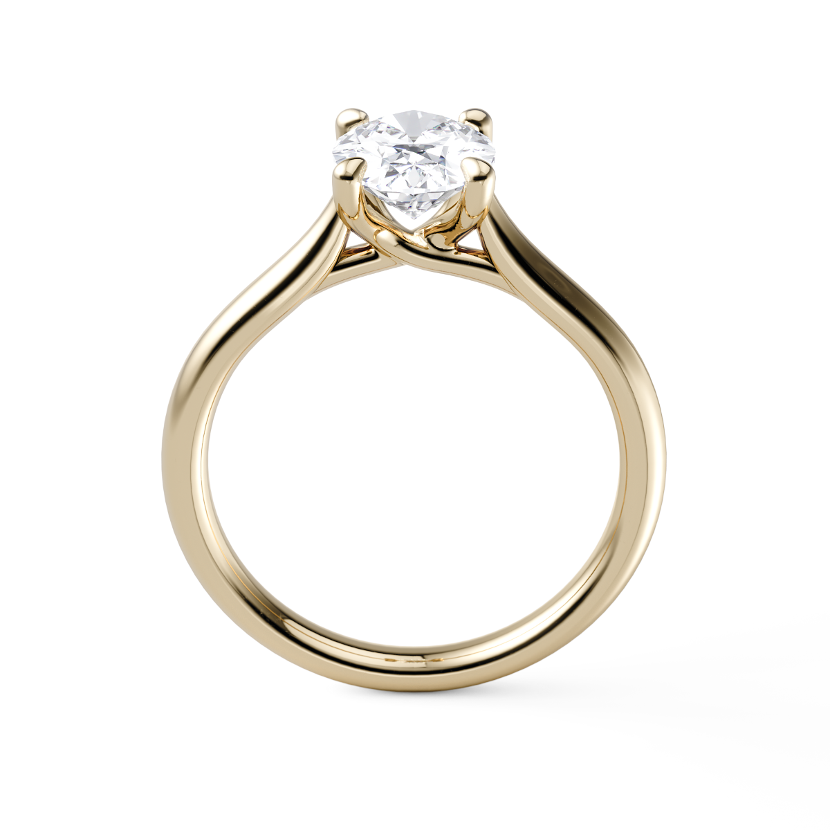 A graceful criss-cross setting rises to cradle an oval diamond, blooming with nature-inspired elegance. Delicate leaf-shaped details intertwine beneath the stone, creating a sculptural silhouette that evokes organic beauty. With its two-tone design and botanical charm, this ring is a refined tribute to love rooted in nature.