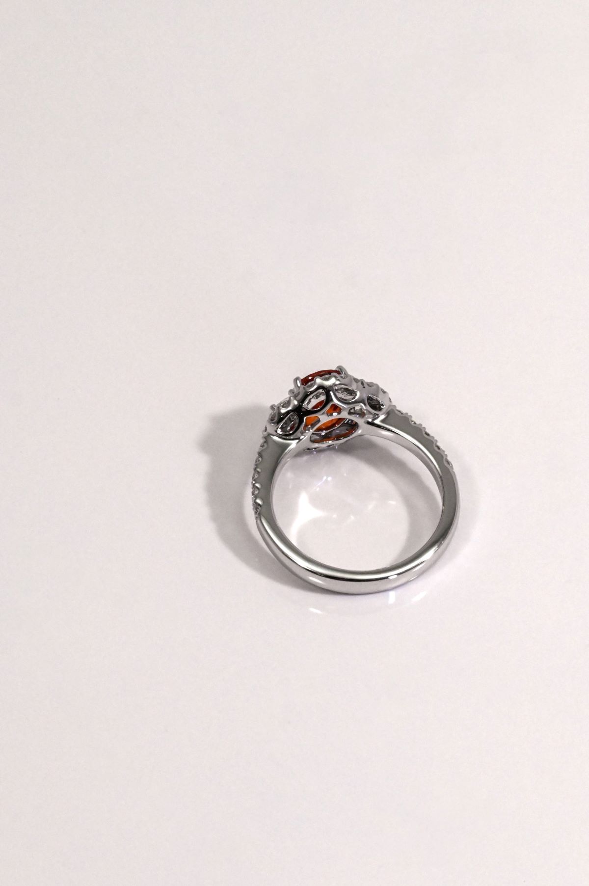- Stone Type: Fancy Sapphire (Reddish-Orange) & Diamonds